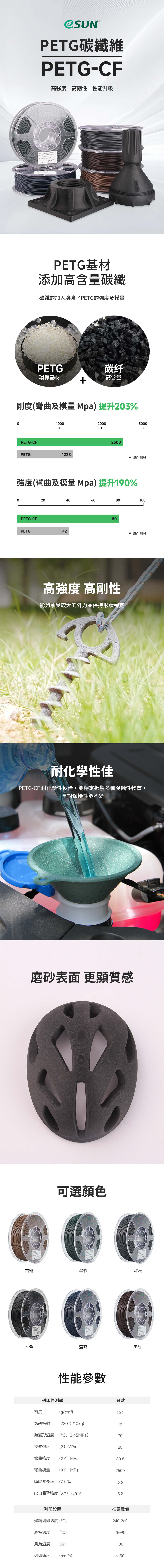 在PETG中加入碳纖增強材料並改性,加強了PETG的剛性和韌性。