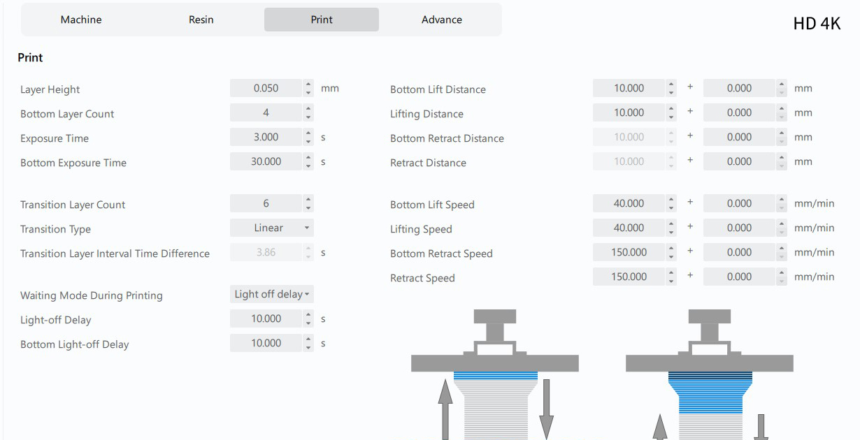 ◆ Exposure Parameters Setting: Exposure settings can vary between printer brands and models. For optimal results, it is recommended printing a calibration test piece to confirm that the exposure parameters are suitable for your specific printer.