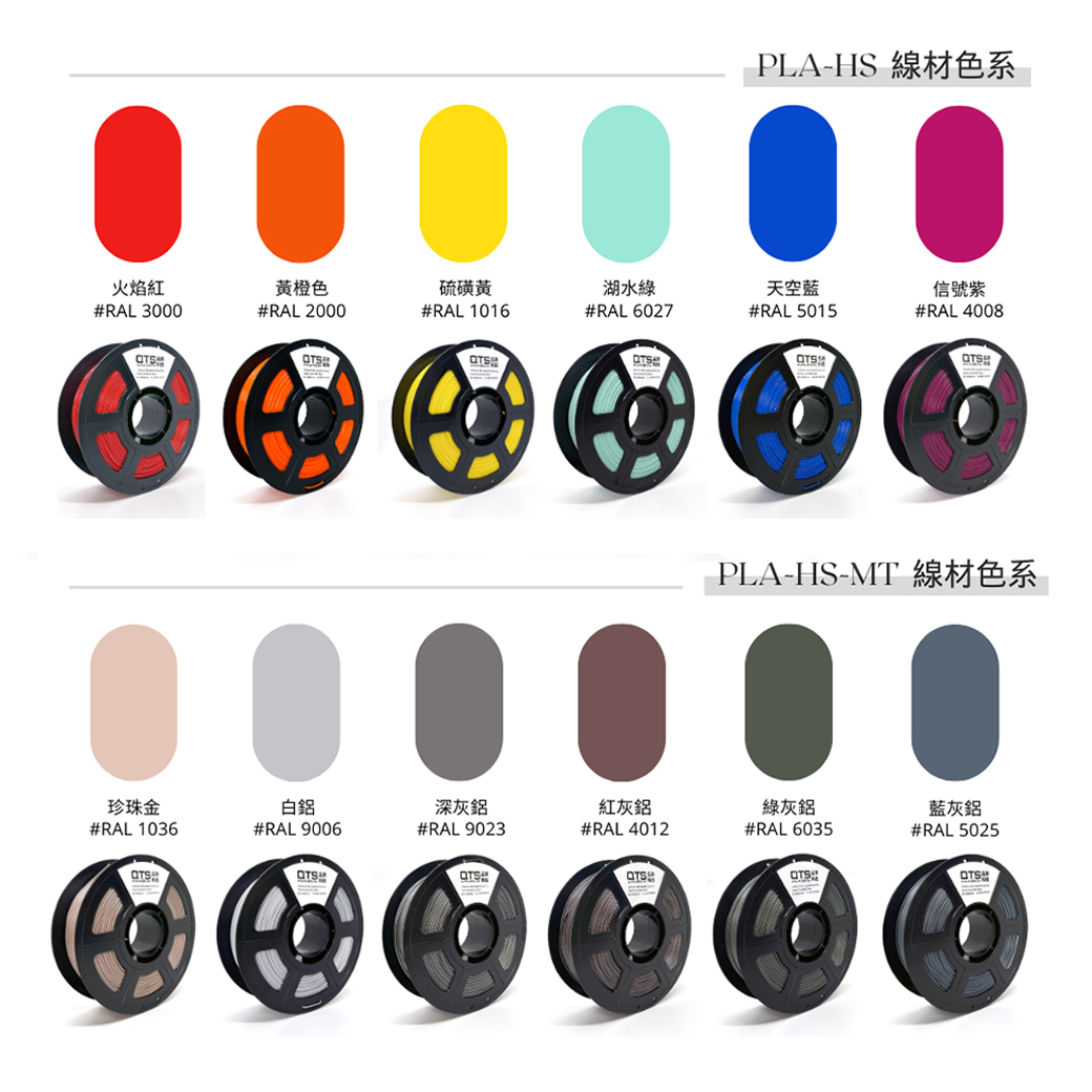 QTS PLA-HS is a high-speed printing PLA filament made from premium raw materials sourced from NatureWorks in the USA. It is well formulated and extruded entirely in Taiwan. The filament is biodegradable, and it heats up quickly, flows smoothly, and solidifies rapidly. It meets international standards such as RoHS and REACH. The filament showcases a smooth and uniform surface with consistent diameter control, making it an ideal choice for beginners in high-speed FDM printing.