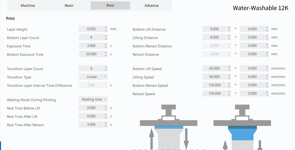 ◆ Exposure Parameters Setting: Exposure settings can vary between printer brands and models. For optimal results, it is recommended printing a calibration test piece to confirm that the exposure parameters are suitable for your specific printer.