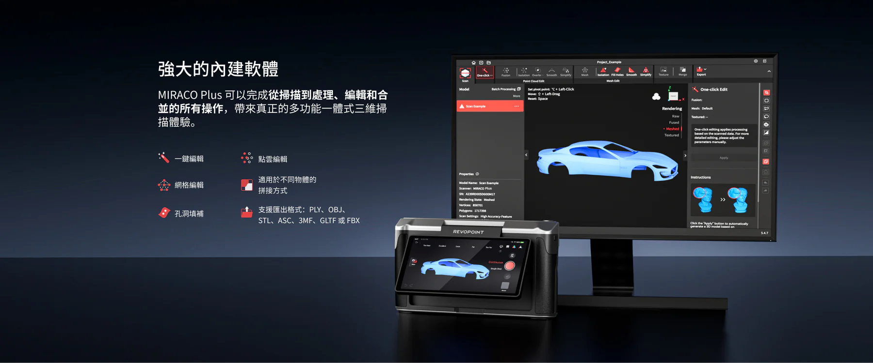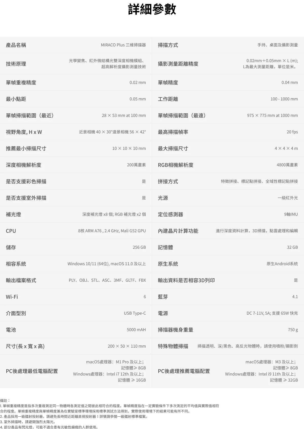 以及 MIRACO Plus 的4800萬畫素RGB相機、強大硬體和先進演算法,使用一臺裝置即可捕捉並建立攝影測量模型。