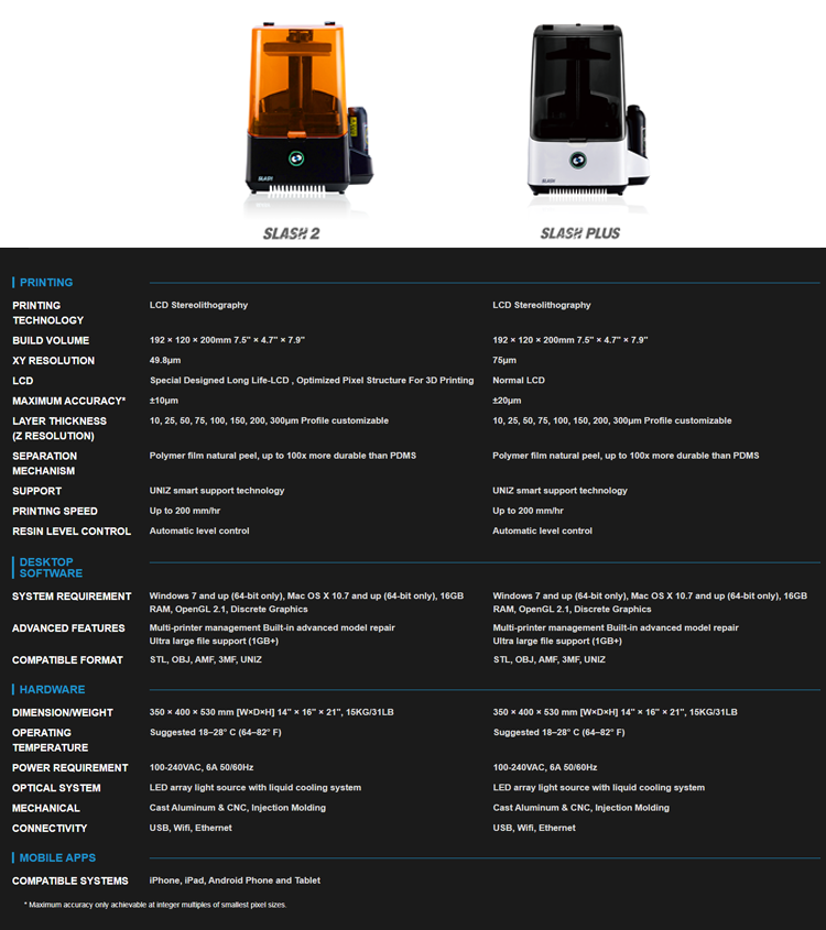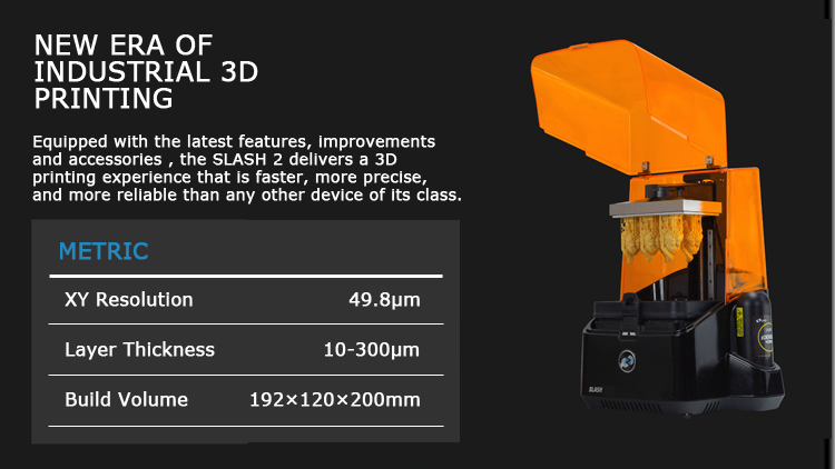 ✦ Start your 3D printing with SLASH 2, a full-featured desktop 3Dprinting solution with world lead SLA-LCD technology. SLASH 2 isperfect for a wide variety of applications including high-quality dentistry, jewelry, arts, crafts, and education. The patented duo liquid coolingsystem will guide you to a new level of printing speed.