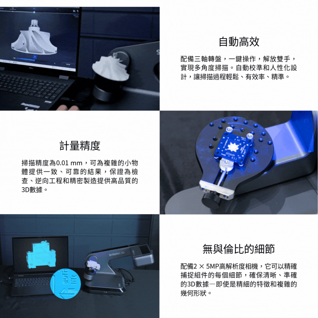 AutoScan Inspec2 是一款專為小型複雜物件設計的全自動桌面3D掃描器。它具備智慧自動化功能、卓越的細節捕捉能力以及無縫的軟體集成,可確保為檢測、逆向工程和產品設計提供高精度、高效的掃描。可廣泛應用於塑料零部件、葉輪葉片、小尺寸鑄件等逆向設計、批量化檢測及品質控制等工業場景。