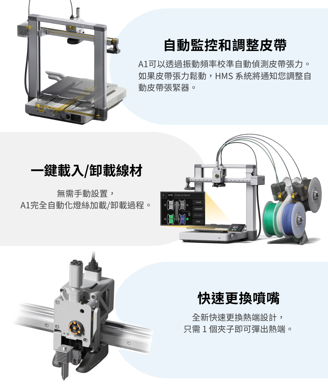 Bambu Lab A1 具有全自動、多色列印、全尺寸床架和 CoreXY 速度,使 3D 列印更適合初學者和愛好者。