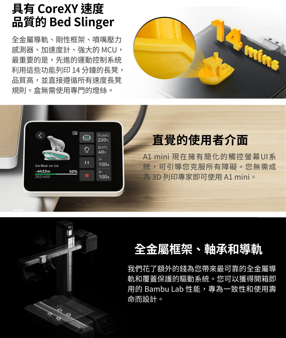 ◎ 全金屬直線導軌和軸承。