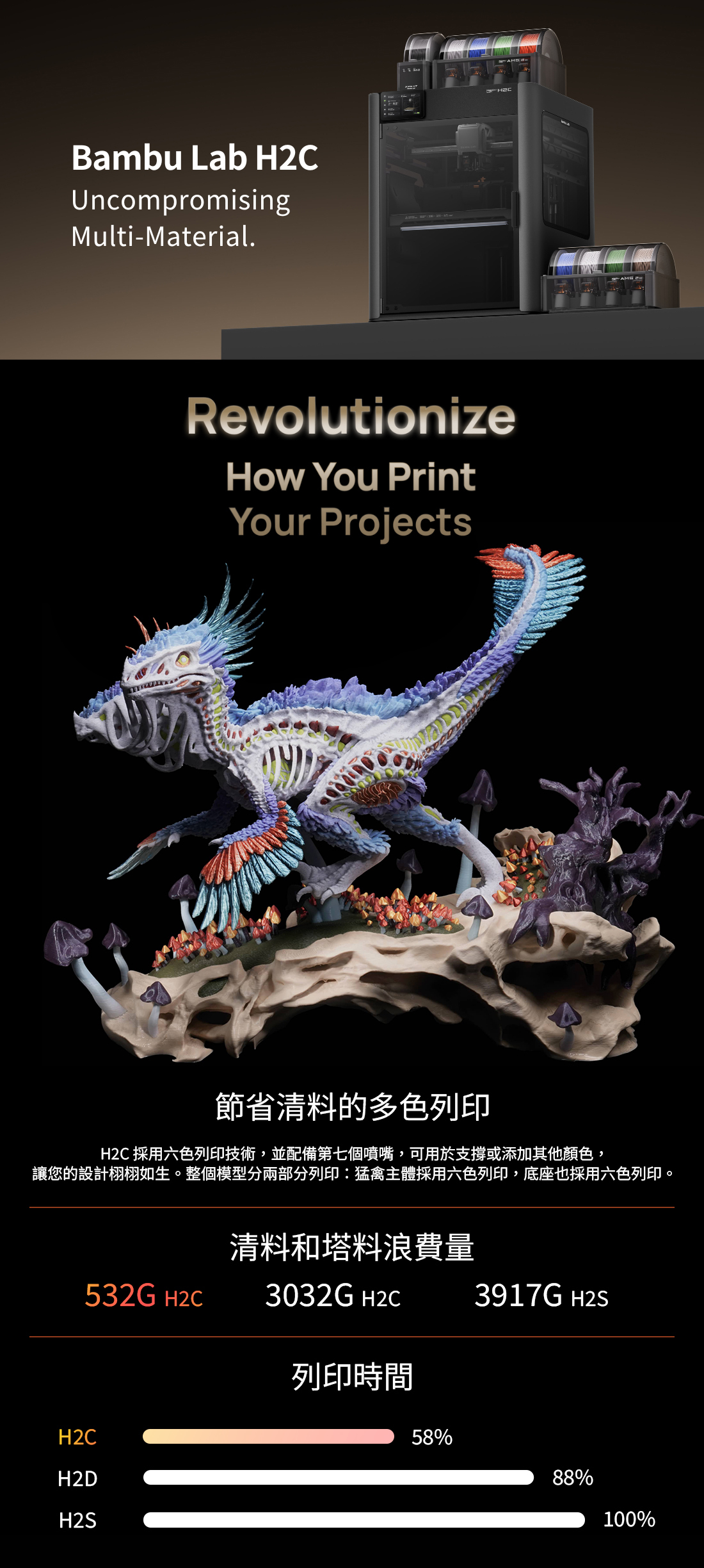 Bambu Lab H2C Combo 多功能3D列印機 - 品測科技