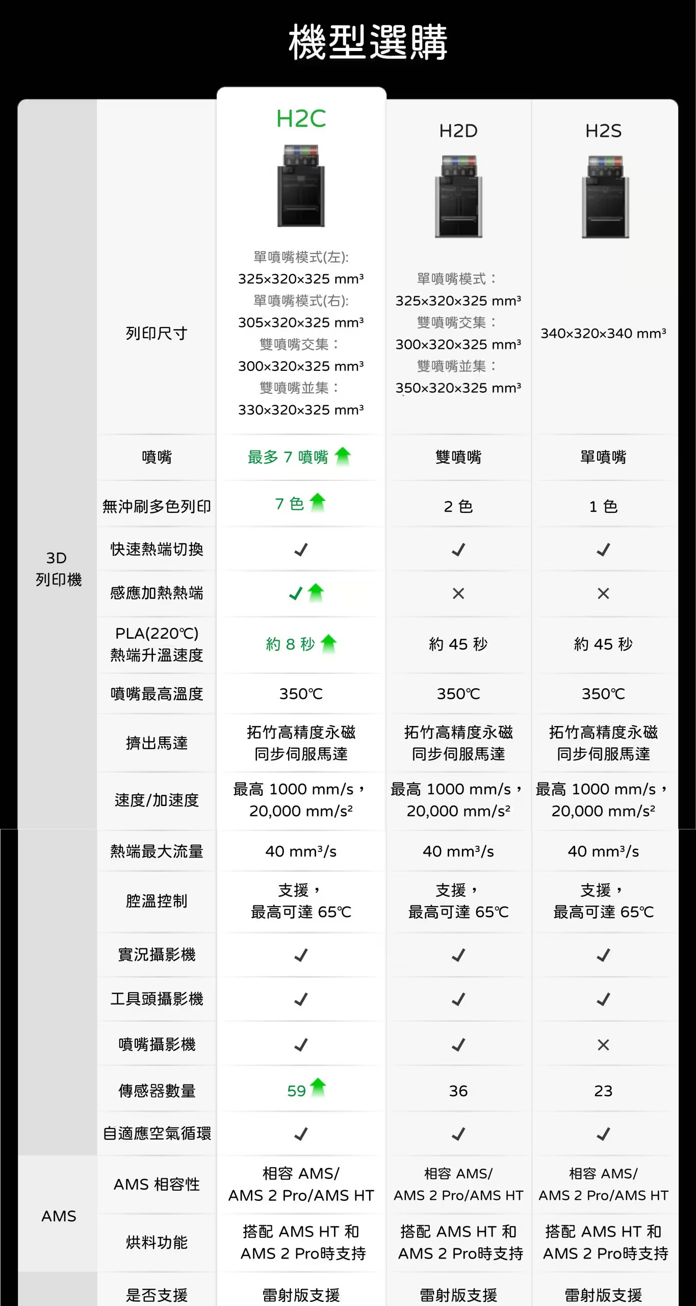 Bambu Lab H2C 採用全新 Vortek 無線熱端切換系統,為多材料與多色列印帶來突破性的效率提升。透過感應式高速加熱、零吐料換色流程、閉環伺服擠出以及 AI 全料徑偵測,有效降低材料浪費並強化列印穩定度。搭配 350°C 高溫噴嘴、65°C 主動恆溫列印艙與可選配的 10W/40W 雷射雕刻切割模組,H2C 能夠應對複雜模型、工程材料與創作加工需求,為專業創作者提供更高效、更全面的列印體驗。