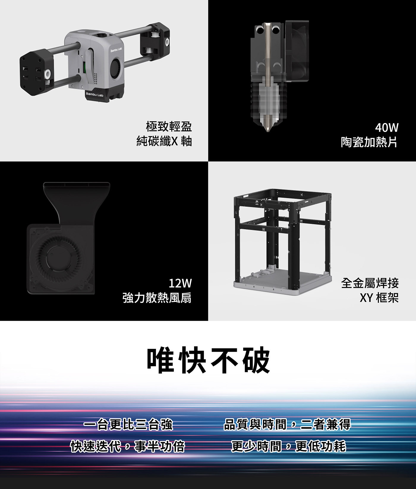 Bambu Lab X1 先進的結構設計和精細的熱控制技術使得桌面 3D 列印突破傳統常規耗材的限制。