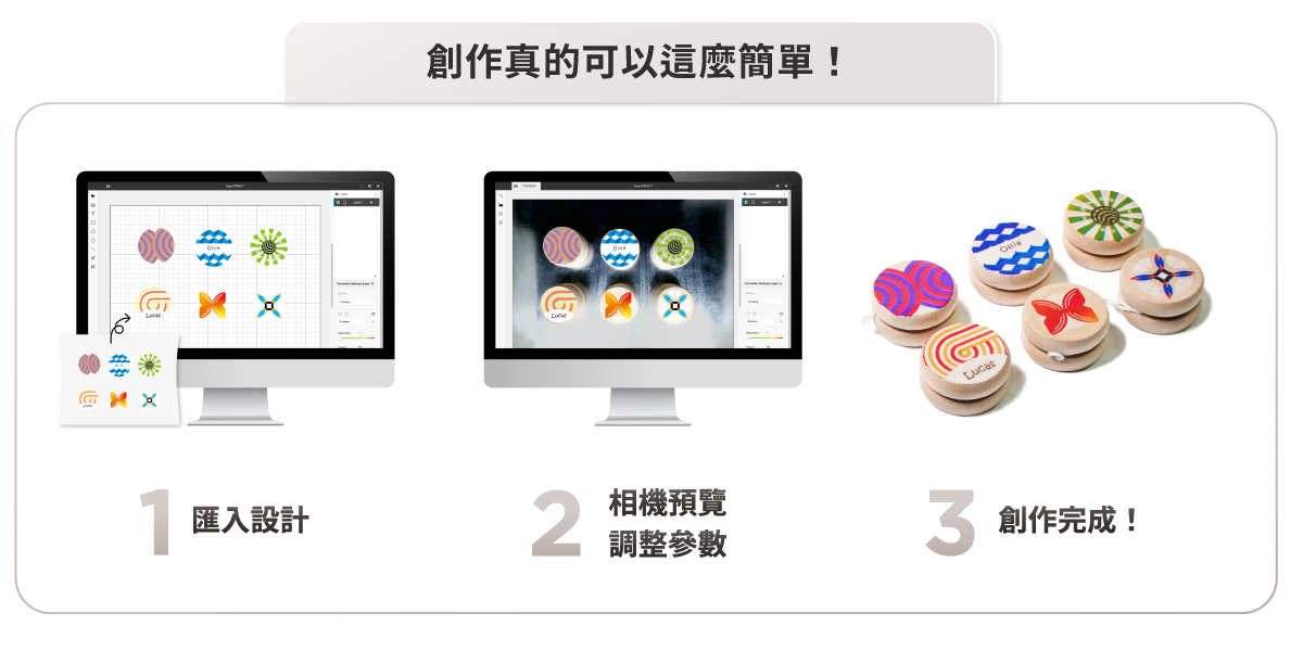 在雷雕創作後可直接為作品上色,大幅增加創作的多元性。