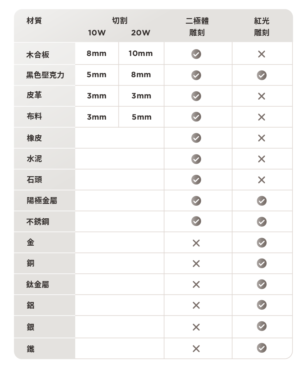 Beam Studio 提供各項材質內建參數,介面簡單易懂。
