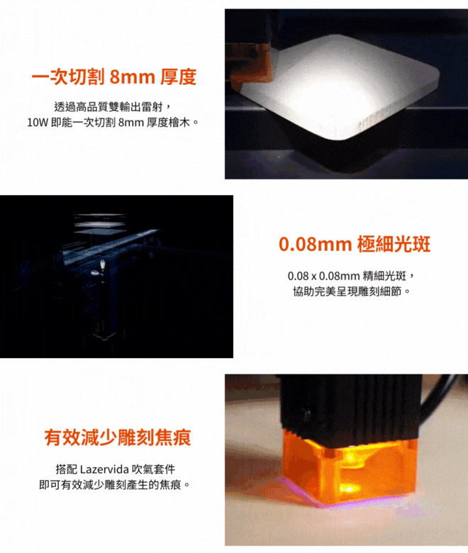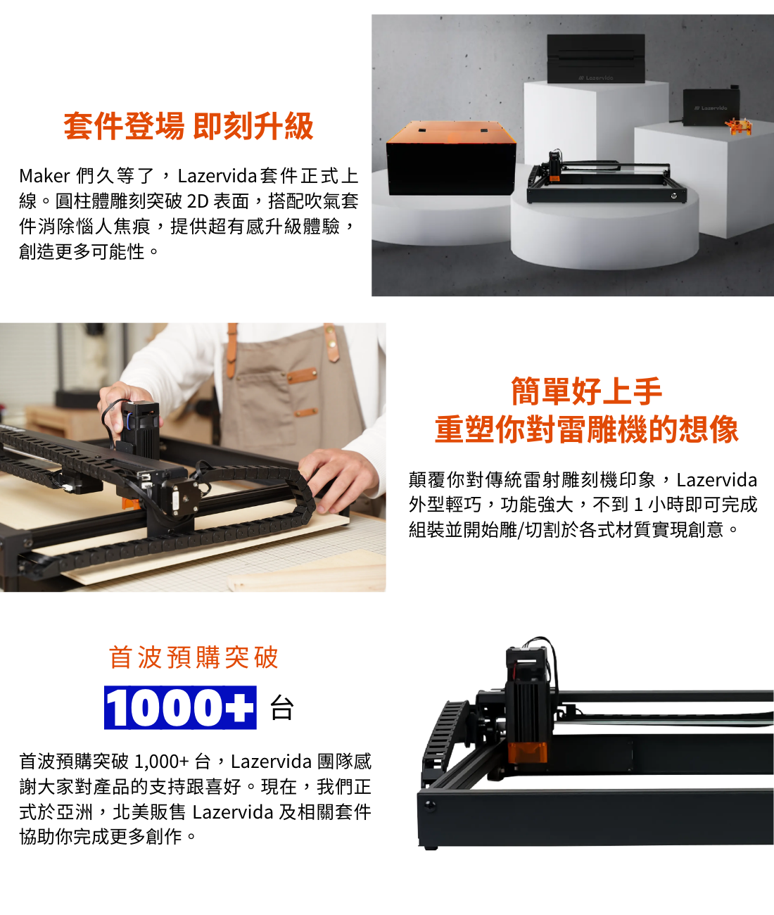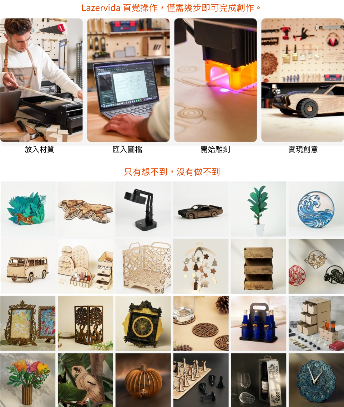 *Lazervida 為組裝式雷射雕刻機,需自行組裝(組裝時間約 30-60 分鐘)。