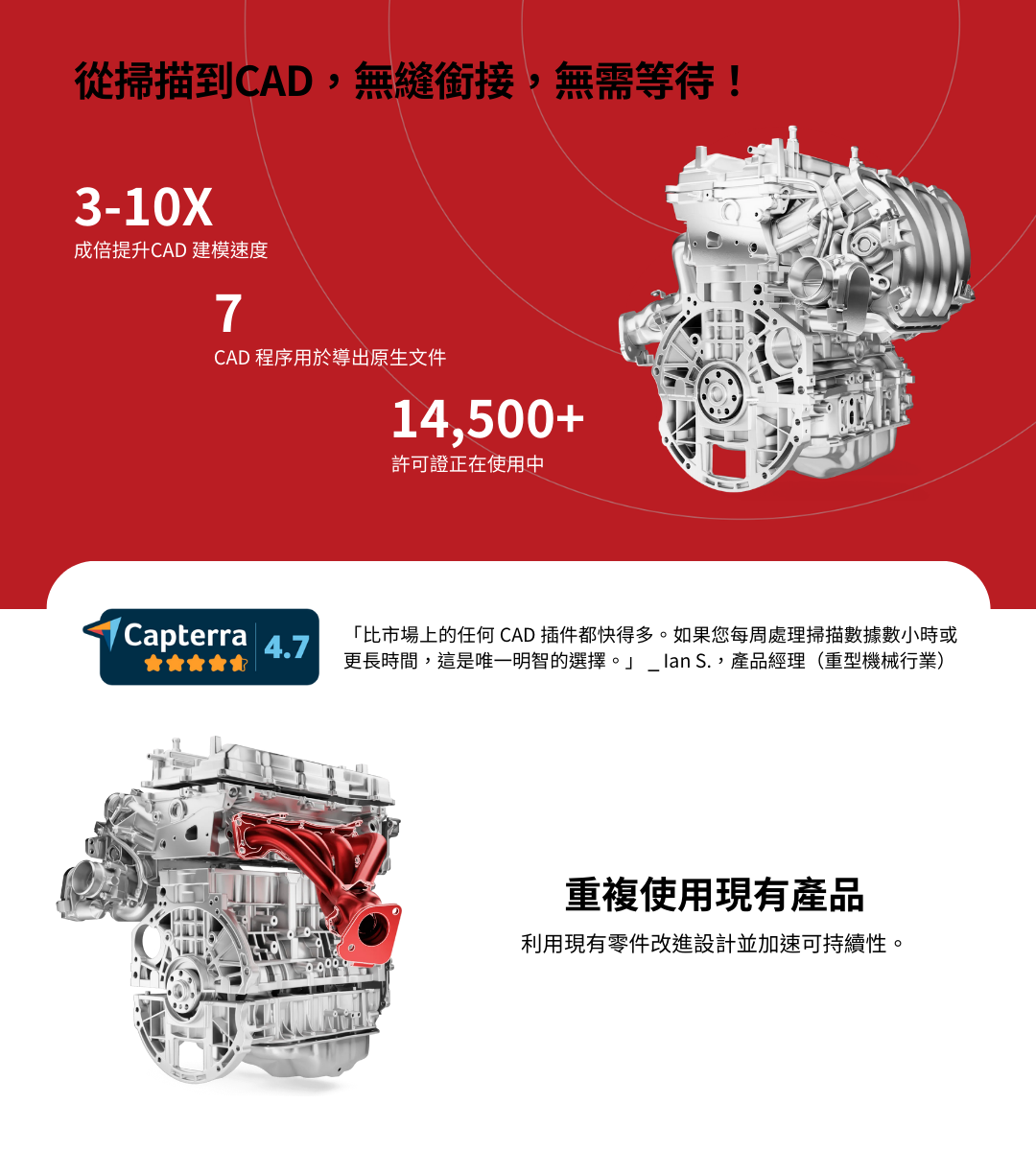 利用逆向工程軟體(結合了基於歷史的CAD 與3D 掃描數據處理)對實物部件進行逆向工程,將其轉化為數字參數CAD 模型,以實現最優結果!