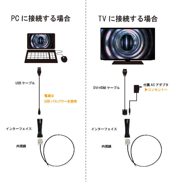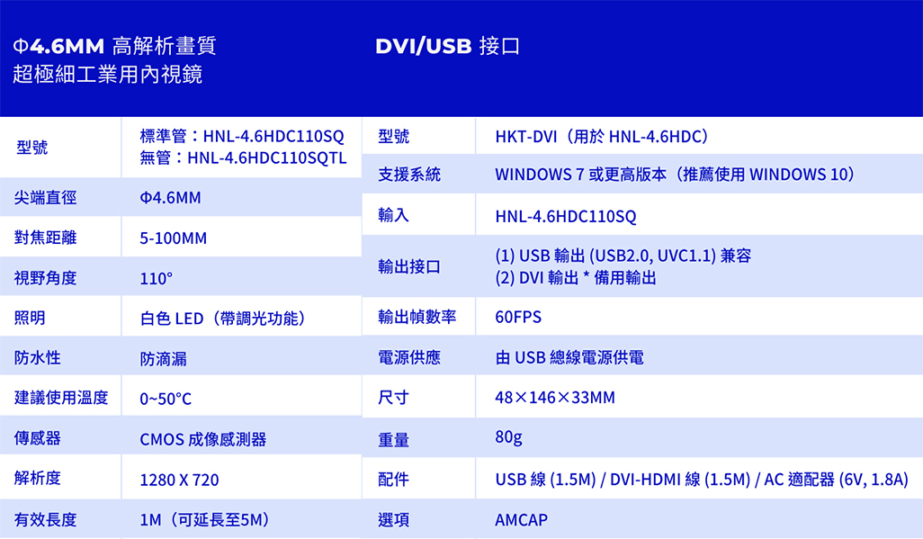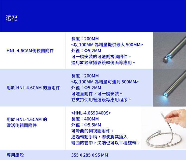 一種超極細工業內視鏡,可實現高清圖像質量,同時薄至 φ4.6 mm。可根據您想看的作品從標準管和無管兩種規格中進行選擇。可輕鬆地在 PC 或電視上查看圖像。
