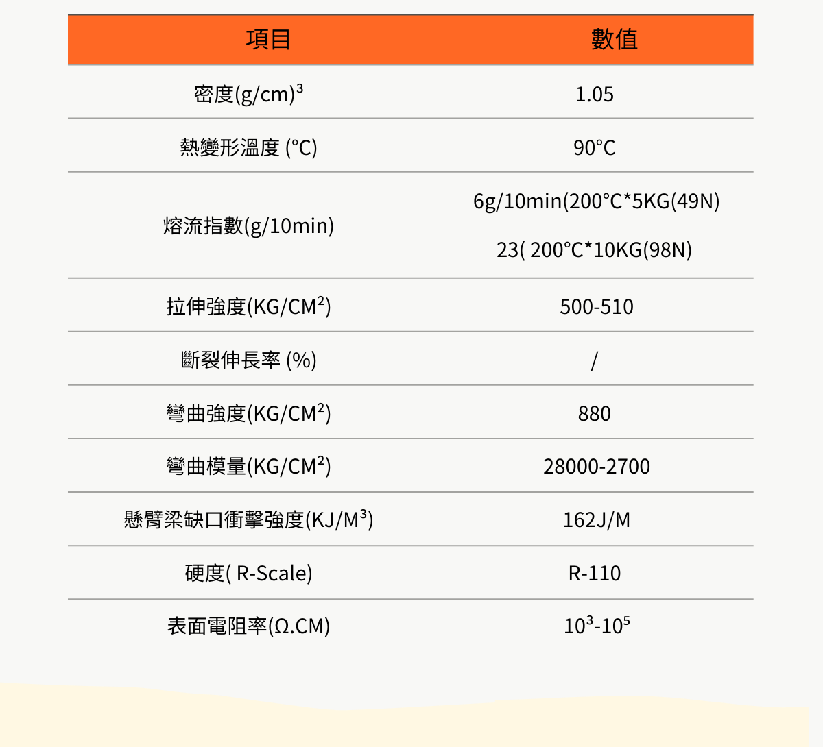 強度、韌性極高,有良好耐熱性 適合重負荷、耐衝擊的用途 |