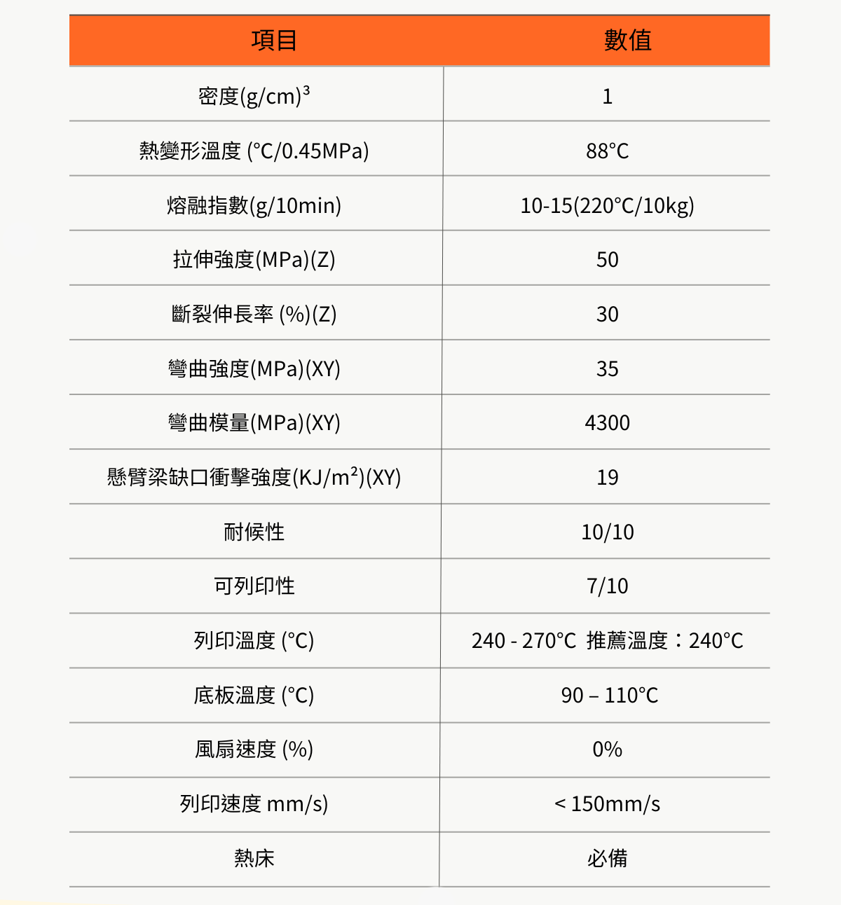 列印時易有翹曲,若成品未處理易有缺陷。部分成品存留氣味 |