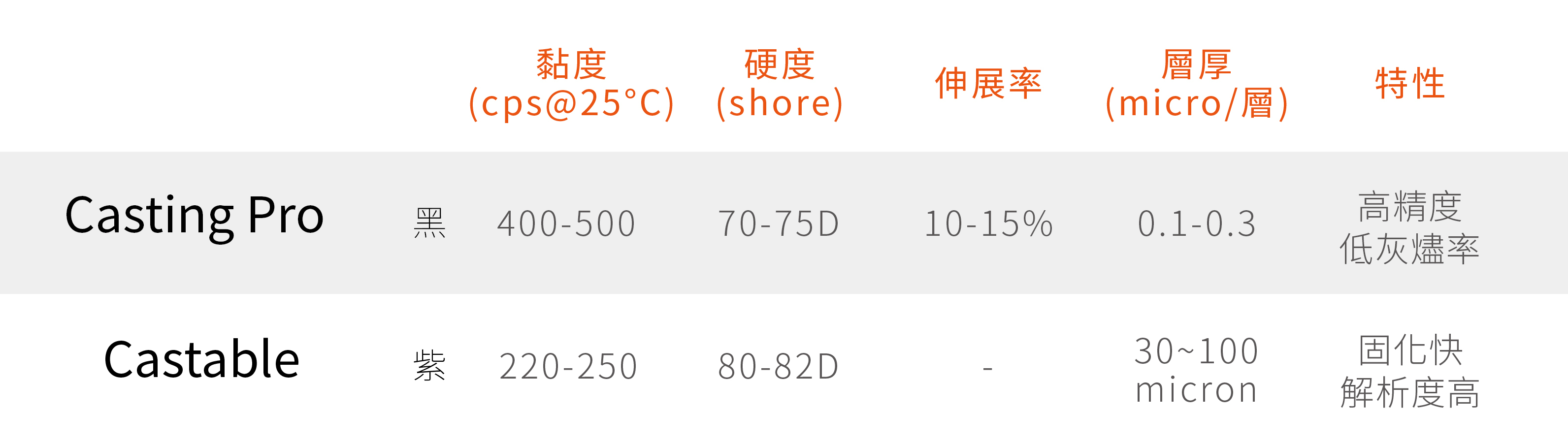Casting Pro 光固化樹脂規格