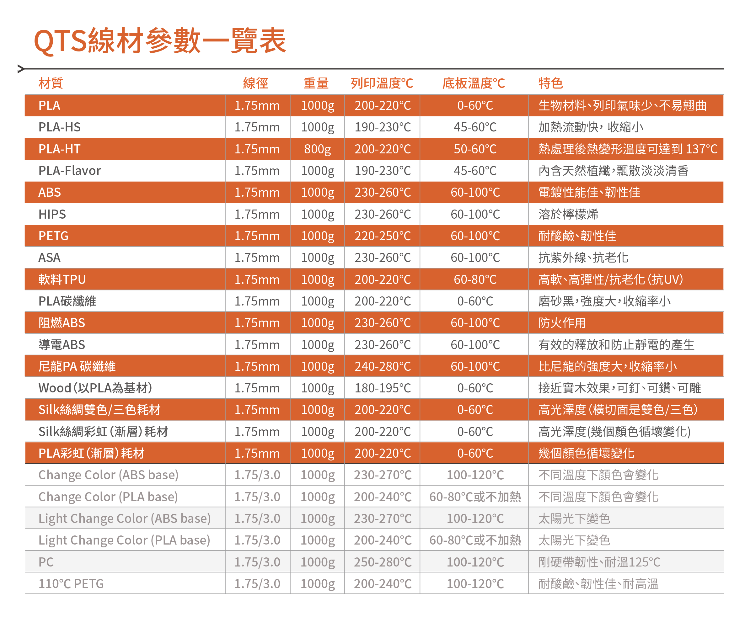 列印時易有翹曲,若成品未處理易有缺陷。部分成品存留氣味 |