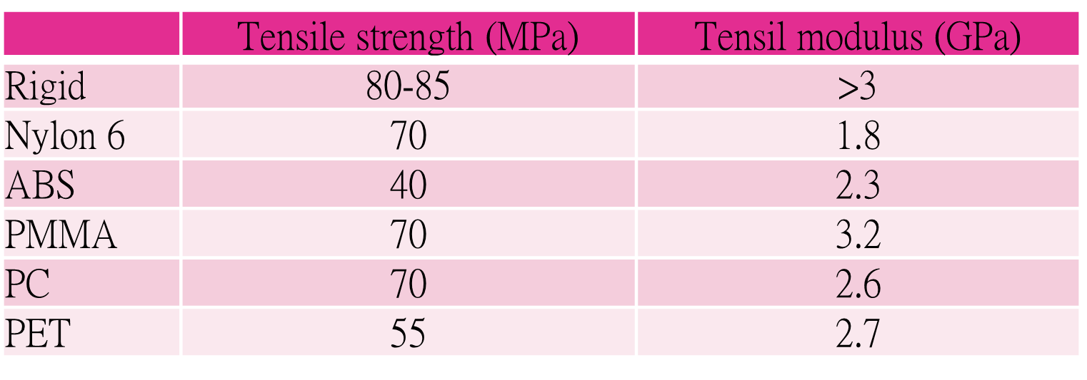 ◆ 高拉伸強度:拉伸斷裂強度最高可達85MPa(優於許多熱塑性塑膠),同時於高溫(120°C)下仍能維持高強度。