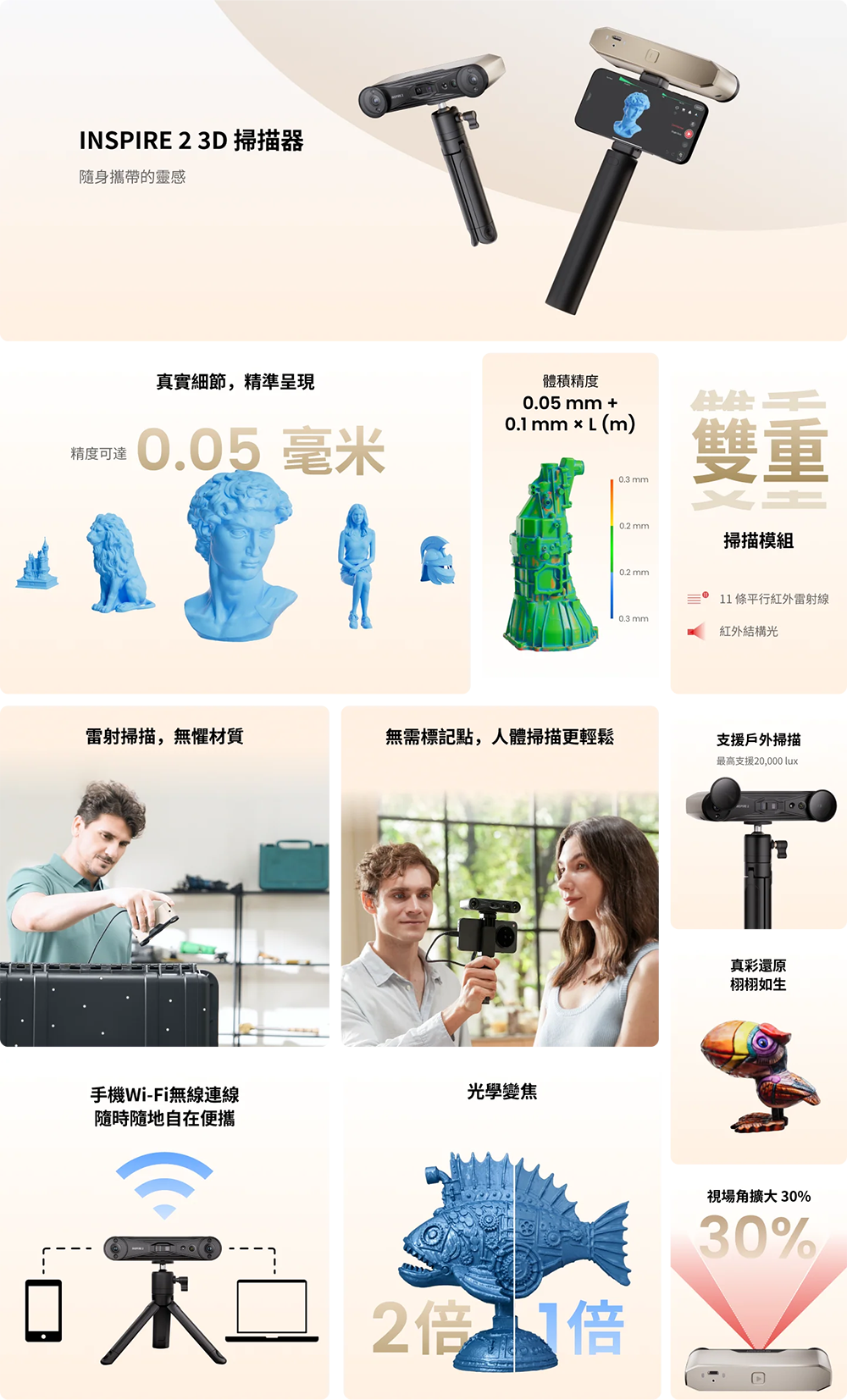 無論是藝術品、原型設計或實體物件數位化,都能呈現令人驚豔的鮮明掃描效果,讓您的 3D 模型栩栩如生。