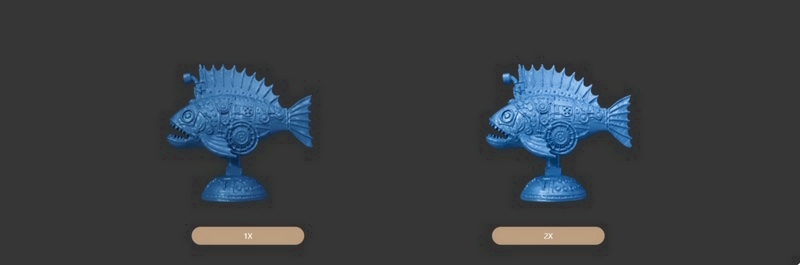 透過 1 倍與 2 倍光學變焦,輕鬆捕捉混合幾何曲面,無須擔心細節遺漏。此功能能集中掃描器的結構光,即使面對多曲面複雜物件,也能精準獲取細部特徵。