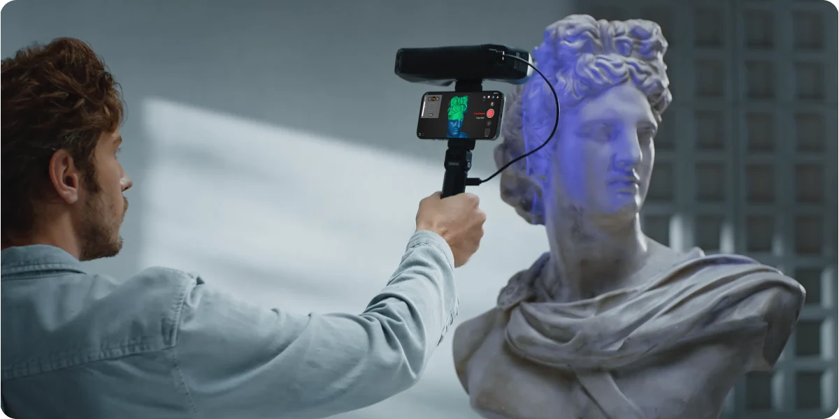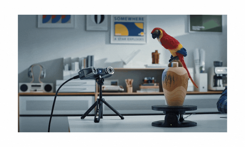 面對特徵豐富的物體,無需標記點即可透過 62 條高強度結構式藍光線,在數秒內完整掃描。每秒生成高達 700 萬點的密集點雲,快速獲取精準 3D 數據。