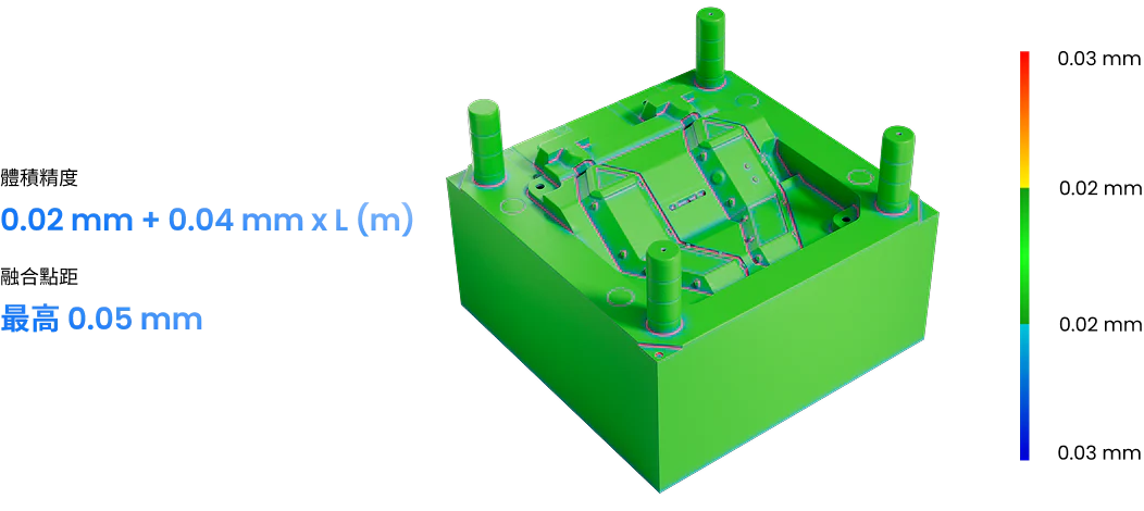 ✦ 體積精度:0.02 + 0.04 mm × L (m)