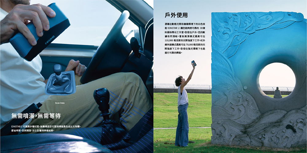 無論是螺絲等精細小物、車輛內裝,或是室內空間與戶外場景掃描,EINSTAR 2 都能靈活應對。即使沒有任何掃描經驗,也能快速上手,讓創作者、設計師與探索者輕鬆進入 3D 數位世界。