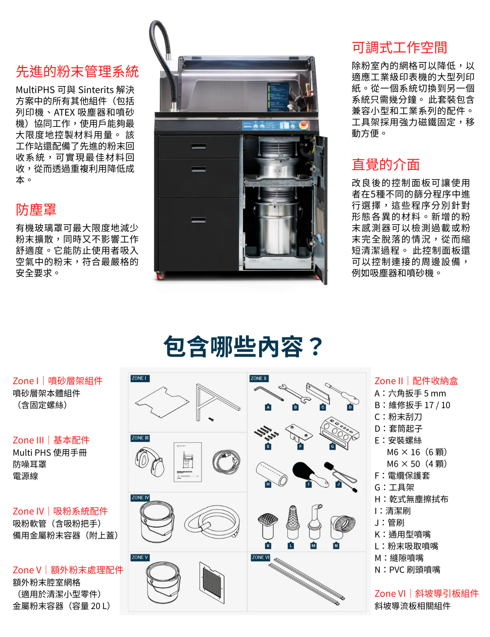 Multi PHS 集後處理、粉末管理、粉末回收於一身,提供完整的解決方案: