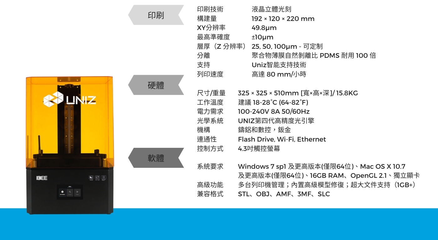 IBEE 提供比同類其他 SLA列印機多 3 倍的構建體積,總構建體積為 192×120×220 mm。