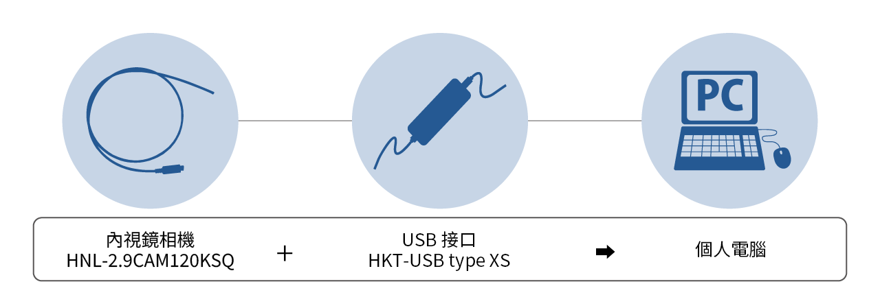 ・影像可輸出至專用螢幕(型號:HKT-5.6SA II),或經由 USB 介面輸出至電腦。