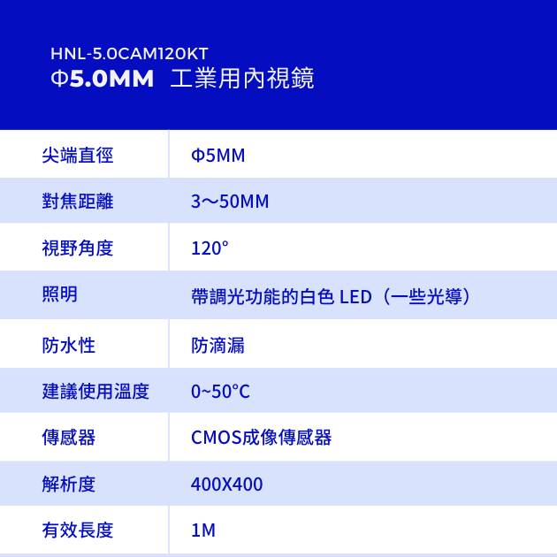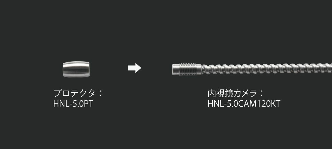 工業內視鏡 HNL-5.0CAM120KT 的一個特點是相機尖端的保護器。保護器可以用 M3 螺絲安裝和拆卸。如果金屬尖端磨損和碎裂,可以更換。推薦在內視鏡頻繁使用且尖端被刮掉時使用。