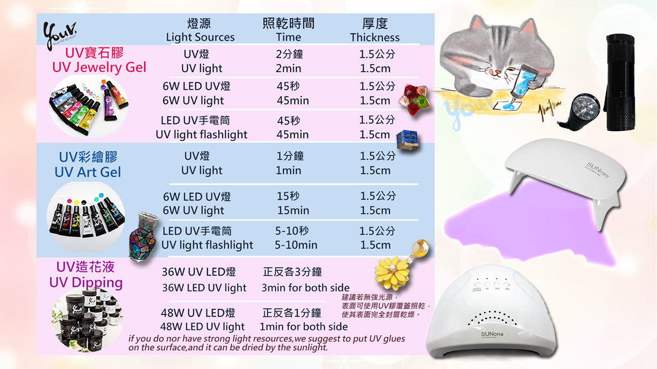 2 in 1採用雙光源(365+405NM)UV LED燈,適用uv造花液
