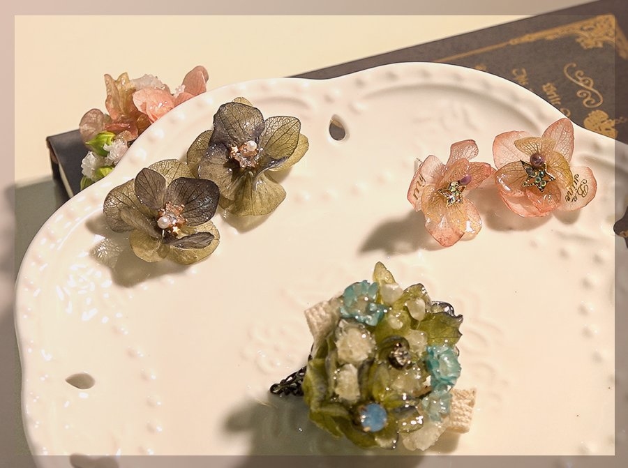 6. 照UV光10秒,接著將畫製作好的花瓣放入花束金具內。