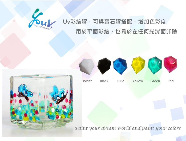 六色包含:紅、黃、藍、綠、黑、透明色。
