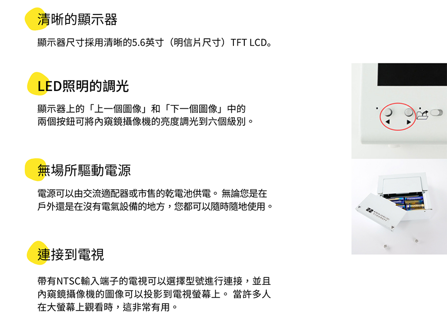 電源除了AC適配器外還配有電池座,可以在室外或沒有電氣設備的地方使用。