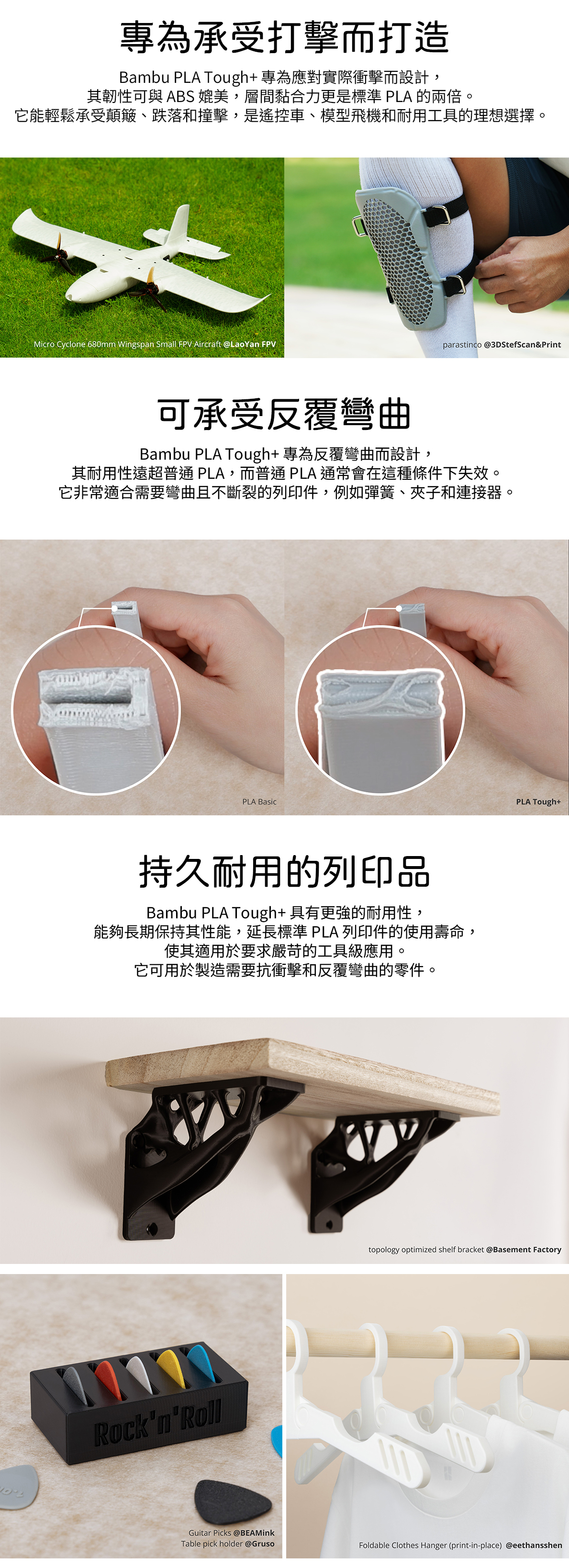 適合需要承受撞擊、彎折的零件,如模型車、工具或連接件,具備耐用與長效特性,讓作品更堅固可靠,壽命大幅延長。