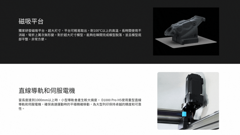 | 建構體積 | 單擠出:1050 x 1050 x 1050mm 雙擠出: 990 x 1000 x 1000mm |