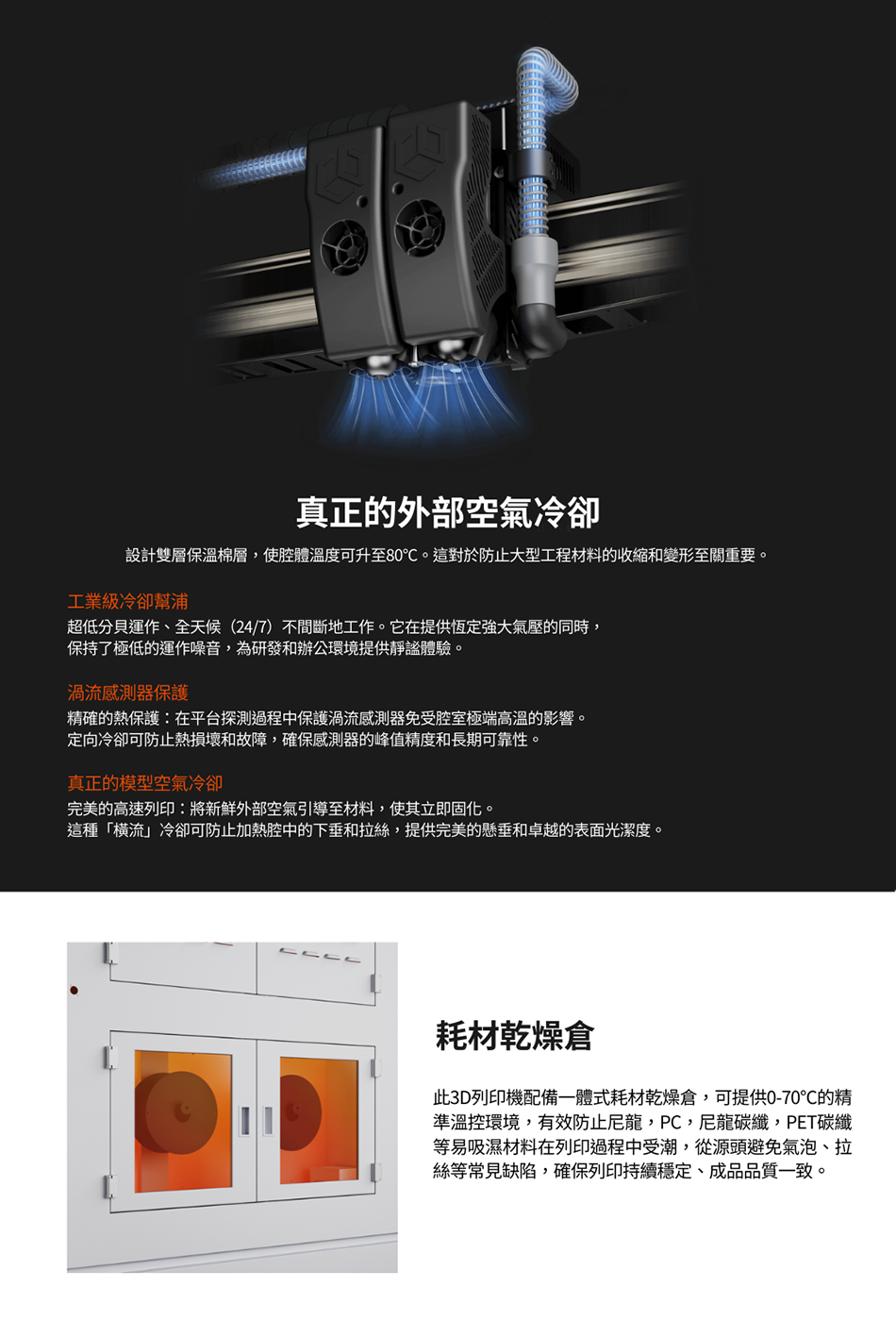 .配備 耗材烘乾室,能乾燥多種吸濕耗材,提升列印品質與成功率。